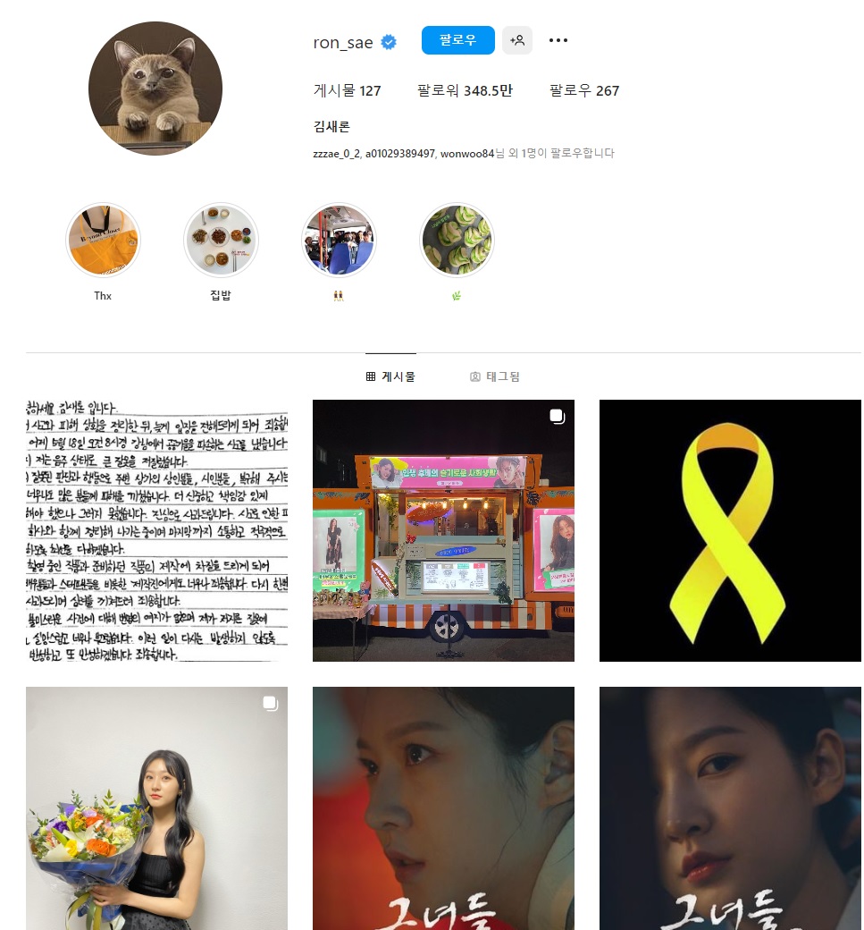 김새론 인스타 주소 : https://www.instagram.com/ron_sae/