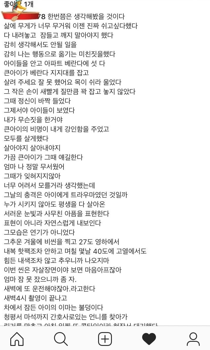 큰 아이의 비명이 내게 강인함을 주었고, 모두를 살게 했다. 살아야지. 살아내야지. 가끔 큰 아이가 그때 얘길 한다 (큰아이=김새론)