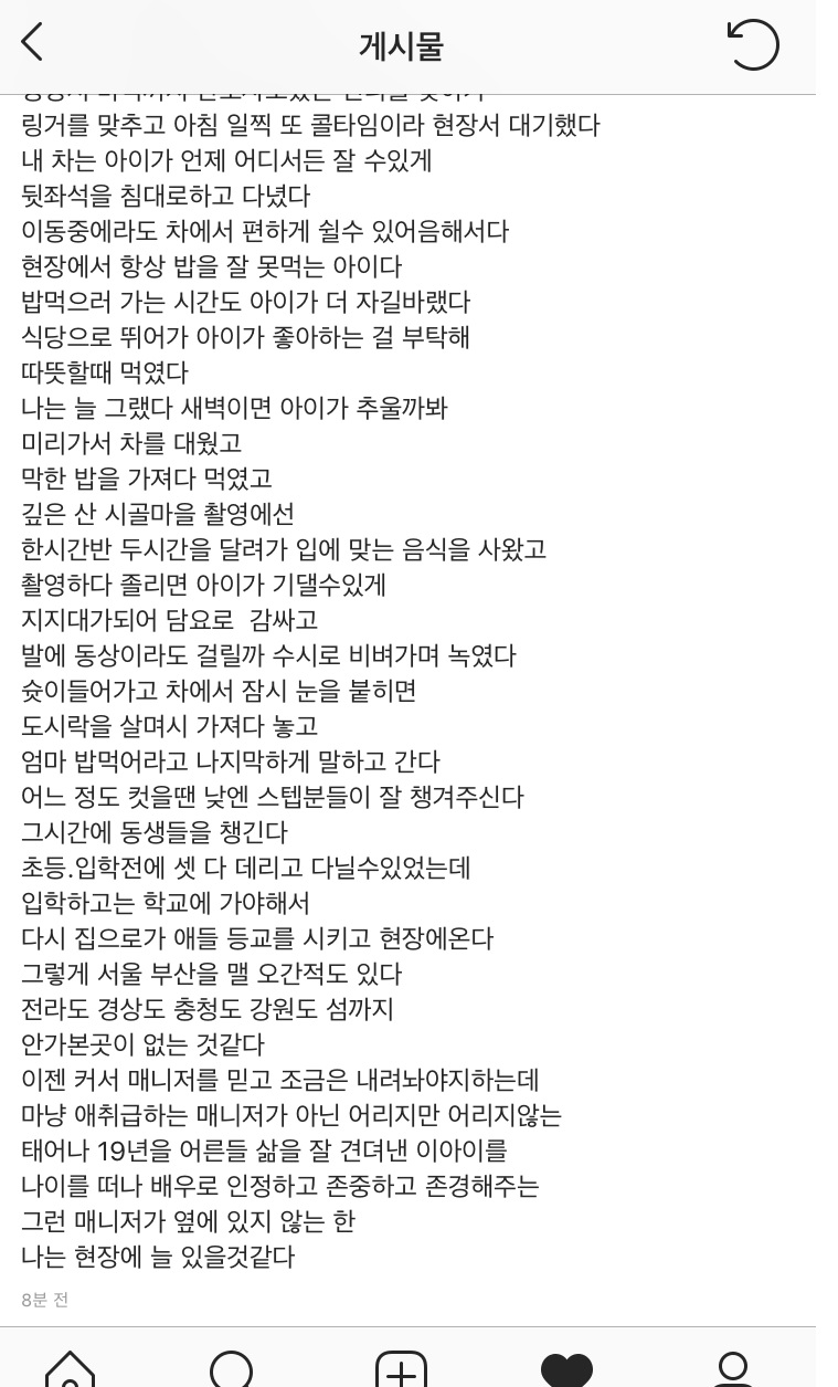 아이 (김새론) 죽일뻔 한 걸 인스타에 올린 김새론 어머니, 김새론 엄마가 올린 사진