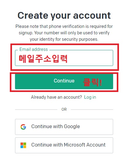 구글아이디나 MS 메일 아이디로 로그인을 해도 되겠지만, 저는 주로쓰는 메일주소로 새로 회원가입을 해보려고 합니다. 일단 메일주소를 입력후 Continue 클릭해주세요.