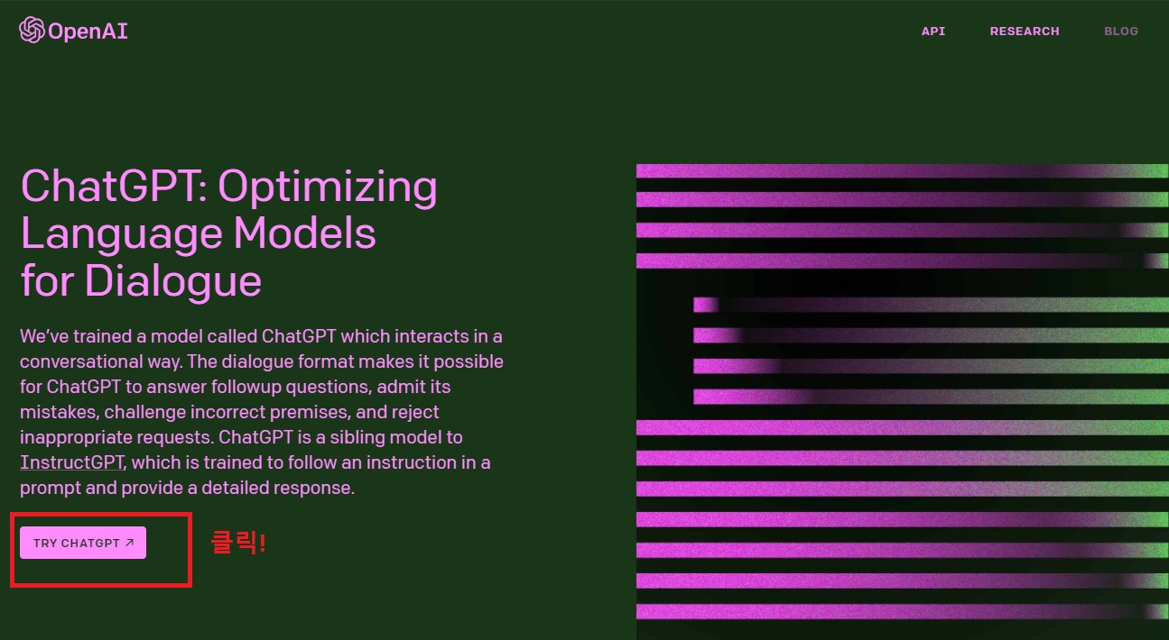 OpenAI 첫 메인화면의 TRY Chat GPT를 클릭하면!