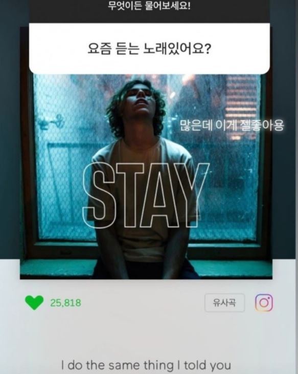 17. 이유비가 요즘 좋아하는 노래 "STAY"라고 이야기하던 시점에 방탄소년단 정국이가 브이라이브에서 STAY 너무 좋다며 라이브로 불러줌.